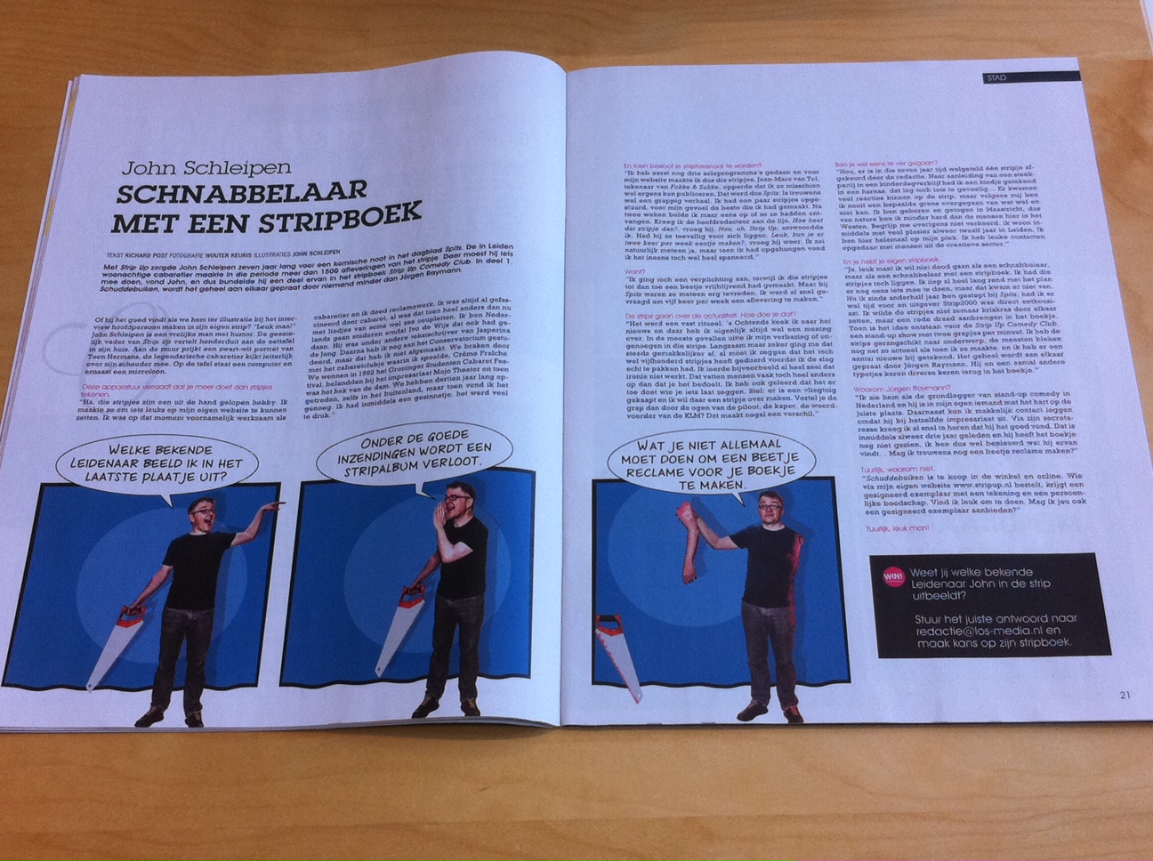 In LOS kun je lezen wat er in de Leidse regio te doen is op het gebied van cultuur, uitgaan en winkelen. Deze onderwerpen brengen we op een luchtige manier, zodat ze toegankelijk zijn voor een breed publiek. Waar mogelijk proberen we de artikelen te illustreren met prikkelende foto’s. Dus als we een striptekenaar interviewen laten we hem figureren in zijn eigen strip. Het contact met de fotografen verloopt overigens ook via mij, waarbij ik een passend concept probeer te verzinnen bij de inhoud van het desbetreffende artikel.